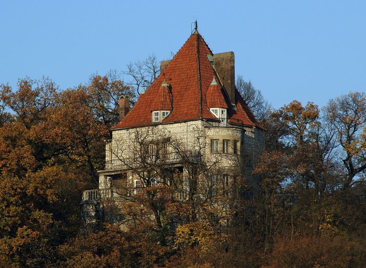 Zamysł artystyczny przybrał realny kształt w 1929 r., po 12 miesiącach intensywnych prac budowlanych. Budowla została wzniesiona przy ul. Jodłowej 13a. Nietypowa bryła tworzy spójną kompozycję z okolicznym krajobrazem. Poza walorami architektonicznymi duży wpływ na końcowy efekt ma otoczenie, w którym powstawał obiekt. Do budowy wykorzystano kamienne ciosy, które sprawiają, że budynek zdaje się stanowić nieodłączną część Skały Przegorzalskiej, na której został wzniesiony. Tło willi tworzy południowo-zachodni rejon Lasu Wolskiego, ze szczytu baszty roztacza się widok na Pasmo Sowińca, a także dolinę Wisły oraz Pogórze Wielickie. Architekt zamierzał uczynić z budynku swój prywatny dom. Tak też się stało, o czym świadczą kartusze z herbami umieszczone nad portalem. Herb rodowy Szyszko-Bohusza Odyniec przedstawia srebrną przełamaną strzałę na niebieskim tle. Architekt przytwierdził go po lewej stronie. Prawą zajmuje natomiast herb Korab – złoty okręt na czerwonym tle. Projekt zakładał zagospodarowanie terenu przylegającego do masywnych murów, stąd wkrótce po zamontowaniu ostatnich części konstrukcji budynku przygotowano miejsce na basen i ogród, które poza funkcjami rekreacyjnymi posiadały duże walory estetyczne i podkreślały przeznaczenie budynku – willa miała być wygodnym i zadbanym schronieniem.
