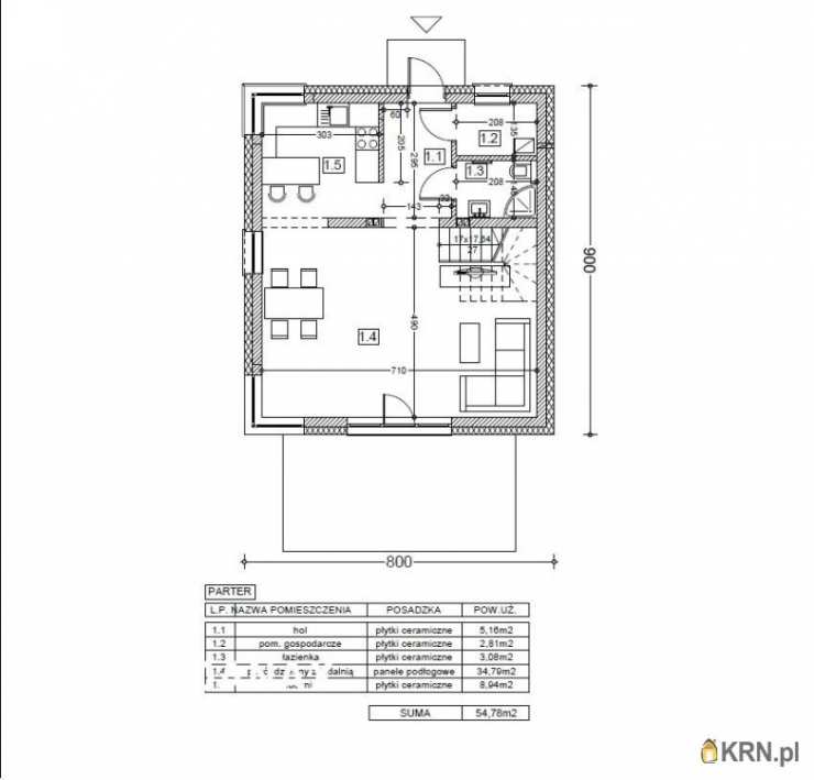 Parter w sumie : 54.78m 2