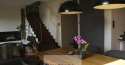 Przestronny salon z kominkiem, otwarty na dużą, widną kuchnię w pełni wyposażoną w meble i sprzęt AGD
