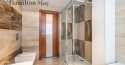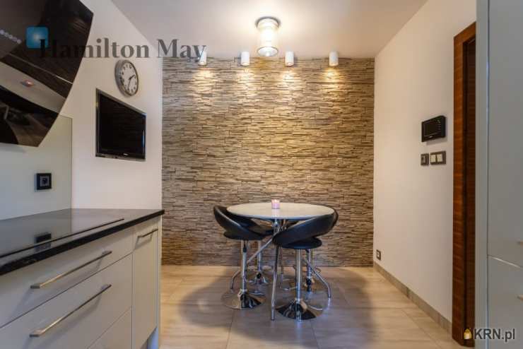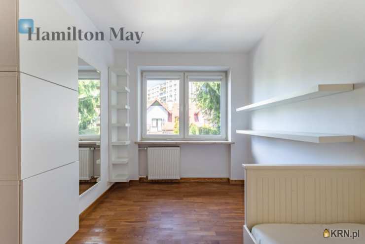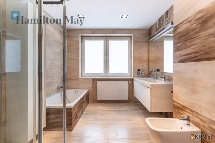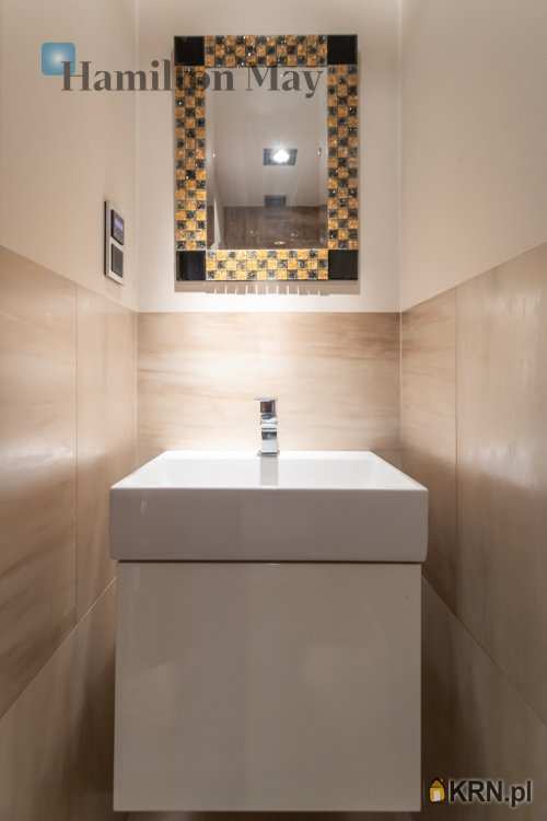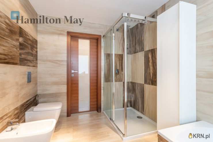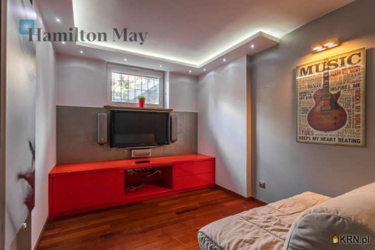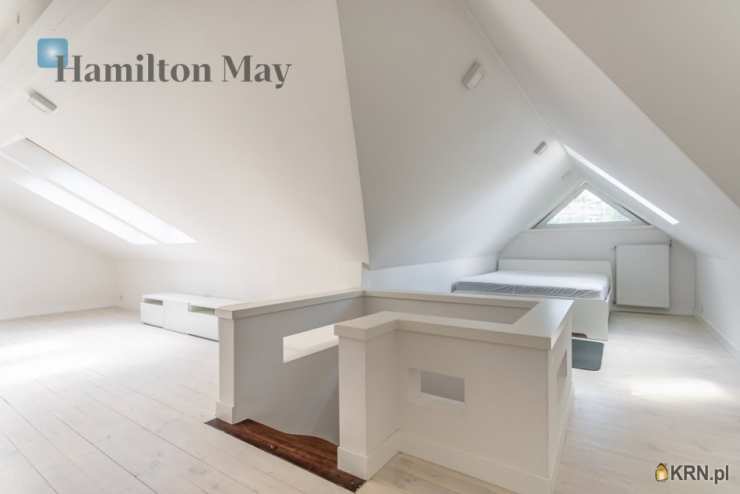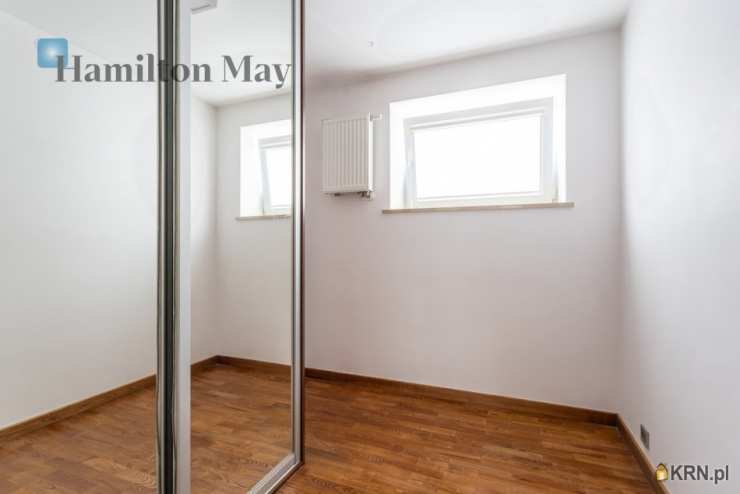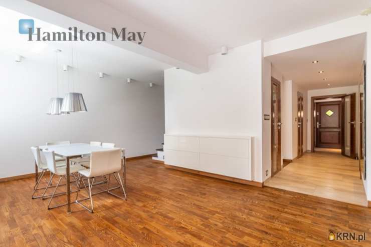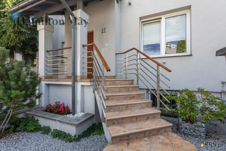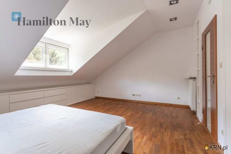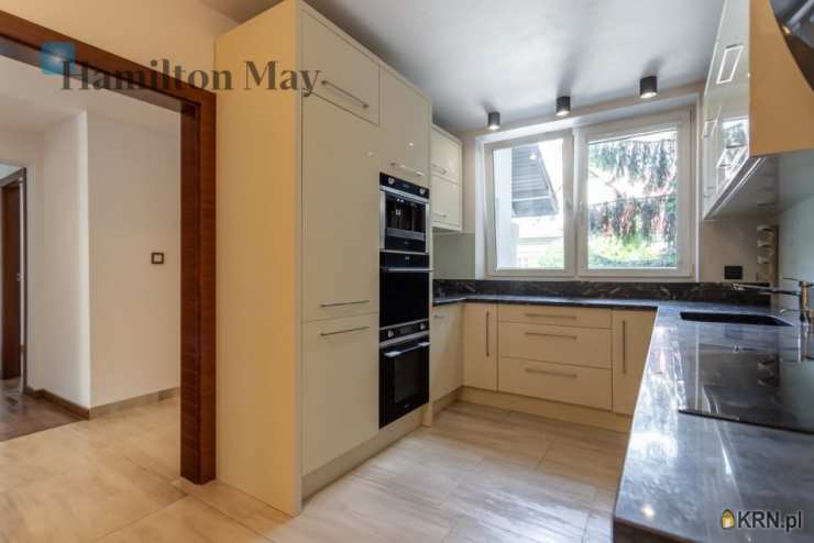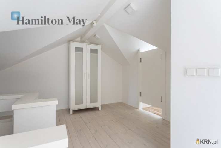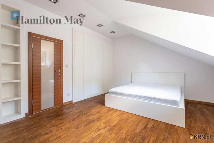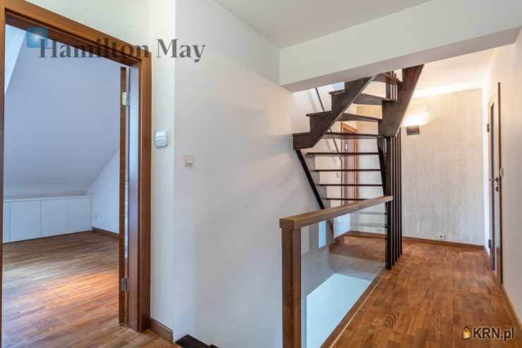 Powierzchnia domu wynosi ok. 250 m2. Na parterze znajduje się: przestronny salon z wyjściem na taras,oddzielna kuchnia, kompletnie wyposażona w sprzęt AGD (piekarnik, mikrofalówka, zmywarka, kawiarka, płyta indukcyjna, pochłaniacz, telewizor), gabinet, oraz toaleta dla gości.Na 1. piętrze usytuowane są: 3 sypialnie, garderoba, oraz łazienka z wanną, prysznicem, podwójną umywalką i bidetem.Na samej górze znajdują się:otwarta powierzchnia mogąca pełnić rolę bawialni lub dodatkowego pokoju,dodatkowa łazienka z narożną wanną i toaletą.Dom jest w całości podpiwniczony - na tym poziomie znajduje się: dodatkowy pokój, pomieszczenia gospodarcze i schowki,pralnia, garaż mieszczący 1 samochód, a także rowerownia z wejściem z zewnątrz. Całość wykończona jest w wysokim standardzie:na podłogach jesion olejowany i deski sosnowe malowane na biało, w kuchni i łazience na 1. piętrze ogrzewanie podłogowe, system audio z rozprowadzeniem.Dom oferowany jest do wynajmu bez mebli.