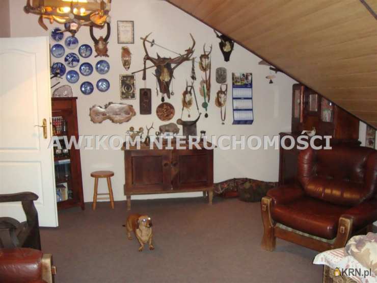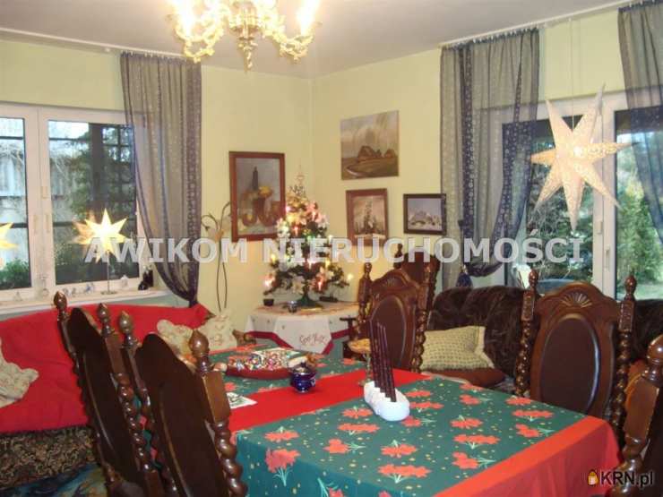 Parter budynku to trzy duże pokoje: 30m2, 26m2, 25m2 wszystkie z wyjściem na obszerny, zadaszony taras o powierzchni 60 m2, kuchnia - 25 m2, łazienka - 16 m2, spiżarnia, pomieszczenie gospodarcze, kotłownia z wyjściem na podwórko. Piętro to trzy sypialnie z garderobami, duży hall i pokój kąpielowy. Budynek zbudowany dla własnych potrzeb z przystosowaniem dla osób niepełnosprawnych. Pięknie zagospodarowany teren. Własny staw rybny z wyspą, na której rośnie płacząca wierzba. W podwórku zabudowania gospodarcze. Część działki porośnięta młodą sosną i brzeziną. Piękna, spokojna okolica w pobliżu Las Młochowski - rezerwat przyrody. W odległości około 2 km zjazd na trasę katowicką. Odległość od Warszawy 27 km. Doskonały dojazd do Stolicy, który zajmuje około 25 minut.