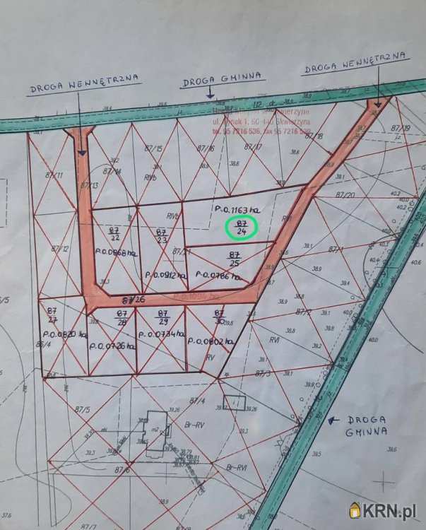 Działki sprzedane oznaczone są w załącznikach na czerwono, dostępne na niebiesko,