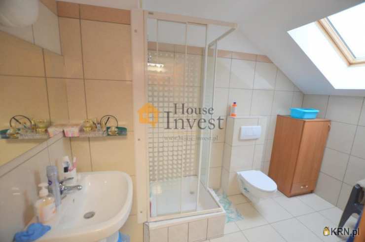 Na piętrze oraz na poddaszu znajdują się pomieszczenia mieszkalne: Trzy pokoje, kuchnia, dwie łazienki i hol.