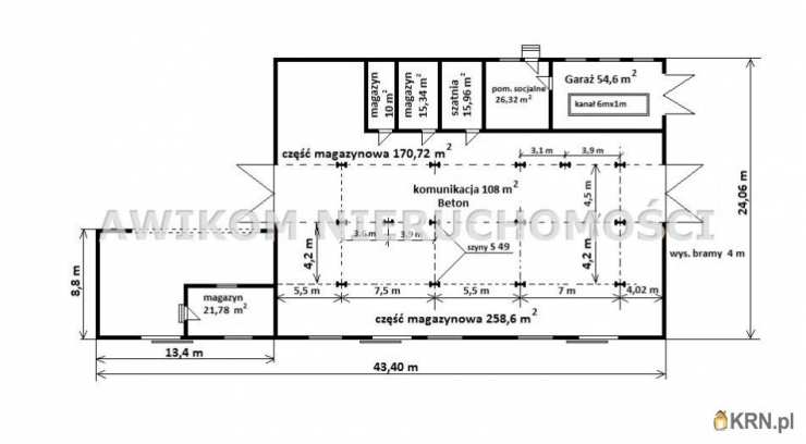 Działka inwestycyjno- produkcyjna. Można na działce pobudować dowolny obiekt przemysłowo-magazynowy. Transformator własny na działce pozwala na bezzwłoczne (bez oczekiwania na decyzję zakładu energetycznego) przyłączenie nowo wybudowanych obiektów. Własna studnia głębinowa i dostęp do sieci wodociągowej. Na działce stoją: wiata magazynowo - produkcyjna, dom - biuro z zapleczem socjalnym, sypialniami dla pracowników, oraz szambo ekologiczne. Te wszystkie naniesienia, czynią tę działkę bardzo tanią w przystosowaniu do własnych potrzeb. Przeznaczenie: cele inwestycyjno-przemysłowe i usługowe. ::KONTAKT DO AGENTA Krzysztof Lesiak Zobacz kontakt535578222 Zobacz kontakt530215113 Zobacz kontaktklesiak@awikom.pl Pośrednik odpowiedzialny zawodowo za wykonanie umowy pośrednictwa: Anna Jankowska (licencja nr: 15854) Oferta wysłana z systemu Galactica Virgo