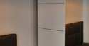 W sypialni znajduje się szerokie, wygodne łoże z pojemnikiem na pościel oraz duża, pojemna szafa z lustrem.